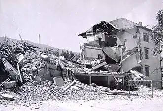 The 1963 Skopje earthquake (Macedonian: Скопски земјотрес од 1963 година) was a 6.1 moment magnitude earthquake which occurred in Skopje, SR Macedonia (present-day North Macedonia), then part of the SFR Yugoslavia, on July 26, 1963, which killed over 1,070 people, injured between 3,000[5] and 4,000[6] and left more than 200,000 people homeless.[4] About 80 percent of the city was destroyed.[4]
