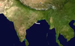 Another deep depression developed in the Bay of Bengal on October 17. It initially moved westward, before eventually re-curving northwestward. The deep depression eventually made landfall in eastern India. By October 21, the deep depression dissipated.[17]