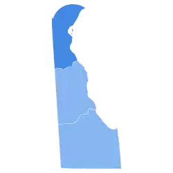 All three counties went blue, and Delaware was won by incumbent President Lyndon B. Johnson of Texas, with 60.95% of the popular vote, against Senator Barry Goldwater of Arizona, with 38.78% of the popular vote.[2][3]