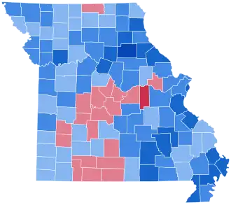 Missouri was won by incumbent President Lyndon B. Johnson (D–Texas), with 64.05 percent of the popular vote, against Senator Barry Goldwater (R–Arizona), with 35.95 percent.[3][4] As of the 2024 presidential election, this is the last time that Perry, Holt, Lawrence, Jasper, Polk, Greene, Cooper, Newton, Cape Girardeau, Barry, St. Charles, and Barton Counties voted for a Democratic presidential candidate.[5]