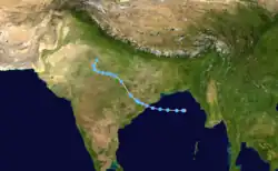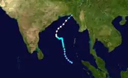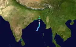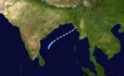 The 1965 North Indian Ocean cyclone season had no bounds, but cyclones tend to form between April and December, with peaks in May and November. The season has no official bounds but cyclones tend to form between April and December. These dates conventionally delimit the period of each year when most tropical cyclones form in the northern Indian Ocean. There are two main seas in the North Indian Ocean—the Bay of Bengal to the east of the Indian subcontinent and the Arabian Sea to the west of India. The official Regional Specialized Meteorological Centre in this basin is the India Meteorological Department (IMD), while the Joint Typhoon Warning Center releases unofficial advisories. An average of four to six storms form in the North Indian Ocean every season with peaks in May and November.[1] Cyclones occurring between the meridians 45°E and 100°E are included in the season by the IMD.[2]