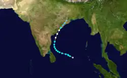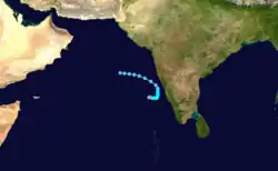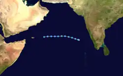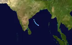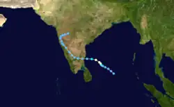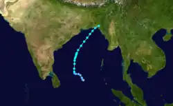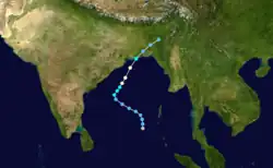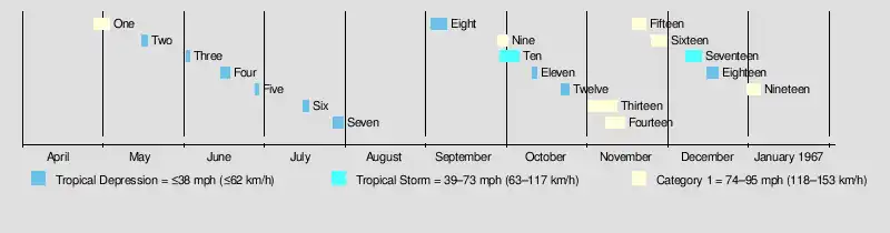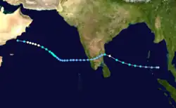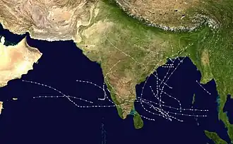 The 1966 North Indian Ocean cyclone season had no bounds, but cyclones tend to form between April and December, with peaks in May and November. The season has no official bounds but cyclones tend to form between April and December. These dates conventionally delimit the period of each year when most tropical cyclones form in the northern Indian Ocean. There are two main seas in the North Indian Ocean—the Bay of Bengal to the east of the Indian subcontinent and the Arabian Sea to the west of India. The official Regional Specialized Meteorological Centre in this basin is the India Meteorological Department (IMD), while the Joint Typhoon Warning Center releases unofficial advisories. An average of four to six storms form in the North Indian Ocean every season with peaks in May and November.[1] Cyclones occurring between the meridians 45°E and 100°E are included in the season by the IMD.[2]