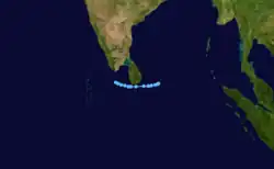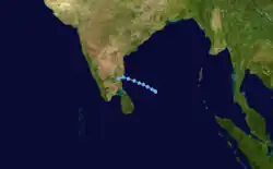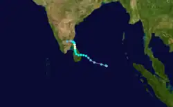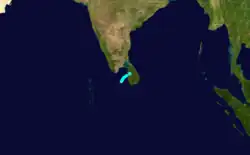 This tropical storm moved from east to west and made a tropical storm-force landfall on Sri Lanka.