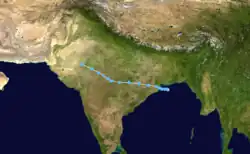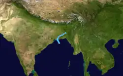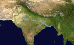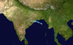 On October 12, an intense cyclone struck the state of Odisha and left complete devastation along its path.[3] The storm moved from southwest to northeast.