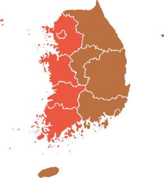 Chungnam | 489,516 | (45.4%) | 505,076 | (46.8%) | 17,662 | (1.6%) | 27,295 | (2.5%) | 28,809 | (2.7%) | 10,560 | (1.0%) | 1,078,918 | ![]() |