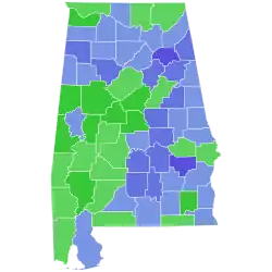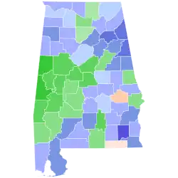 Cullman | 11,134 | 67.60% | 5,225 | 31.72% | 111 | 0.67% | 5,909 | 35.88% | 16,470 |