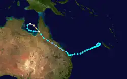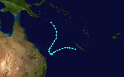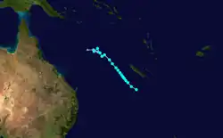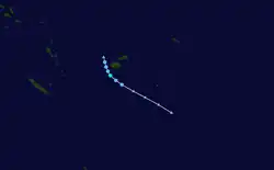 During December 15, a small tropical depression developed about 278 km (175 mi) to the north of Yasawa-i-Rara in Fiji's Yasawa Islands.[1] Over the next day, the system drifted westwards, before it started to move southwards and intensify further.[1] The system subsequently became equivalent to a modern-day category 1 tropical cyclone, with 10-minute sustained wind speeds of 75 km/h (45 mph) during December 17.[1][2] During that day, the system passed about 95 km (60 mi) to the west of Nadi and started to move south-eastwards and passed well to the south of Ono-I-Lau during December 18.[1] The system was last noted during the next day, after it had moved below 25S and out of the tropics.[1] It was thought that the system caused gale-force winds in parts of Viti Levu, Vatulele, Kandavu and the Yasawa and Mamanutha group of islands.[1]