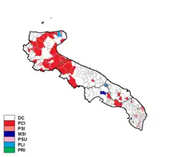 Christian Democracy was by far the largest party, while the Italian Communist Party came distantly second. After the election Christian Democrat Gennaro Trisorio Liuzzi was elected President of the Region at the head of a centre-left coalition (Organic Centre-left).