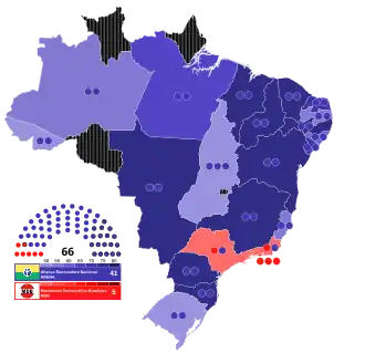 Brazilian Democratic Movement | 4,777,927 | 30.54 | 87 | –45 | |