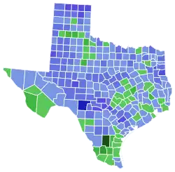 ![]() ![]() Bentsen: 50–60% 60–70% 70–80% 80–90% >90% Bush: 50–60% 60–70% | |||||||||||||||||