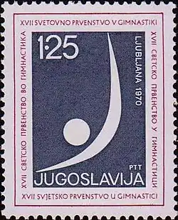 ![]() A Yugoslav stamp featuring the logo of the 1970 World Artistic Gymnastics Championships | |