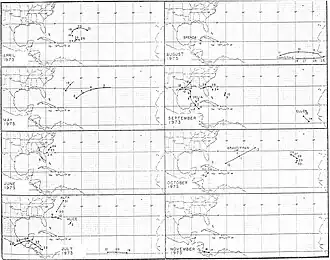 - ^ a b c d e f g h i j k l m n o p q r s t u v w x y z aa ab ac ad ae af ag ah ai aj ak al am an ao ap Paul J. Herbert; Neil L. Frank (January 28, 1974). "Atlantic Hurricane Season of 1973" (PDF). National Hurricane Center. Archived (PDF) from the original on March 3, 2016. Retrieved September 20, 2009.