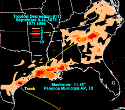 - ^ a b c David M. Roth (2009). "Tropical Depression Eleven — September 8–14, 1973". Hydrometeorological Prediction Center. Archived from the original on March 4, 2016. Retrieved September 20, 2009.