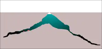 The first reasonably accurate map of the cavern was made in 1984 after the newly formed CDAA Research Group made mapping and photographic dives showing the chamber to be roughly oval in shape. There was another exploration in June 1992, but the deepest sections were surveyed and mapped in 2002/03. The eastern tunnel is obstructed by restrictions at about 57 metres (187 ft) and continues downwards to 124 metres (407 ft) before becoming horizontal, and further access is blocked by a rock pile.[5] Despite knowing their maximum depths, however, the total lengths of the northwest and southwest tunnels are unknown, and they may extend as far as the southern shores as part of the intricate freshwater-drainage system flowing through the mountains in the area.