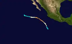 - ^ Hurricane Specialists Division (2009). "Eastern Pacific Best Tracks, 1949–2008". National Hurricane Center. Archived from the original on July 15, 2009. Retrieved November 8, 2009.