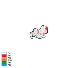 Christian Democracy was by far the largest party, gaining almost than three times the share of vote of the Italian Communist Party, which came distantly second.
