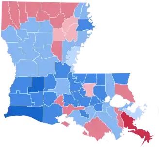 Plaquemines | 2,614 | 29.52% | 6,052 | 68.35% | 33 | 0.37% | 38 | 0.43% | 81 | 0.91% | 37 | 0.42% | -3,438 | -38.83% | 8,855 |