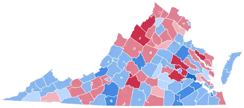 Virginia had voted Republican at all but one of the previous six presidential elections, largely due to its large white Washington and Richmond suburbs that received large-scale in-migration from the Northeast,[2] alongside the Shenandoah Valley,[3] being amongst the first traditionally Democratic areas of the former Confederacy to turn Republican at both the presidential level and in federal congressional elections.[4] After the collapse of the Byrd Organization and the expansion of the state's formerly small electorate via the Voting Rights Act, these trends intensified except in the heavily unionised coalfields of Southwest Virginia, where unlike elsewhere in the Confederacy, many newly registered poor whites voted Democratic. The statewide Democratic party was severely divided into conservative, moderate and liberal factions,[5] so that in addition to voting Republican in five of six presidential elections, Virginia's Congressional delegation would gain a Republican majority as early as the 91st Congress, although it was 1970 before significant GOP gains occurred in the state legislature.