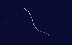 Peak intensity | 50 km/h (30 mph) (10-min); 997 hPa (mbar) |
