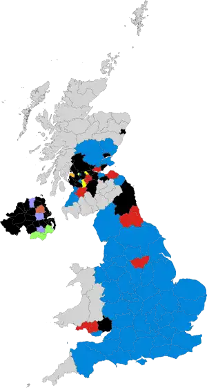 ![]() Colours denote the winning party, as shown in the main table of results. |