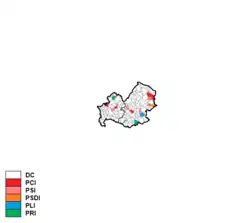 Christian Democracy was by far the largest party, gaining more than three times the share of vote of the Italian Communist Party, which came distantly second.