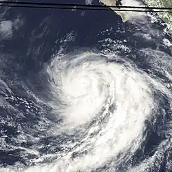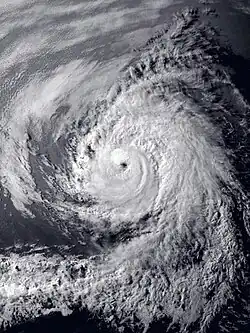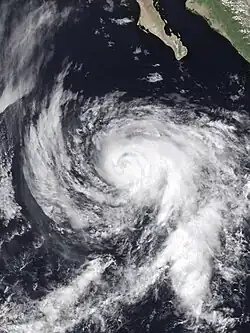 Overall, the 1980 season was slightly below the long-term average, with 16 tropical cyclones forming. Of those, 15 were named, 7 reached hurricane intensity, and only 3 became major hurricanes by attaining category 3 status or higher on the Saffir–Simpson scale.[3] All eastern Pacific systems this year formed in the eastern Pacific proper and two storms crossed into the central Pacific: Carmen from the west and Kay from the east.[4] The season had an early start when Carmen crossed over the International Date Line in April.[4] The strongest storm of this season is Hurricane Kay, peaking at 140 mph (225 km/h). Kay lasted for fourteen and a half days, which was the fifth-longest-lasting Pacific hurricane at the time.