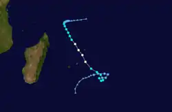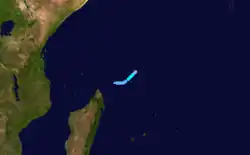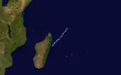 There were six storms named by the weather service in Madagascar or Mauritius, with advisories issued by Météo-France's meteorological office at Réunion (MFR).[1] At the time, the MFR area of warning responsibility was from the coast of Africa to 80° E, and the agency primarily used the Dvorak technique to estimate the intensities of tropical cyclones.[4] The Joint Typhoon Warning Center (JTWC), which is a joint United States Navy – United States Air Force task force that issues tropical cyclone warnings for the region,[5] also tracked a short-lived tropical storm in February, which formed on February 5 northeast of Mauritius. The system tracked to the southeast, reaching peak winds of 65 km/h (40 mph) before dissipating on February 8 northwest of Rodrigues.[6]