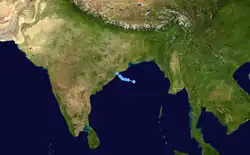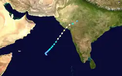 The final storm of the season developed on November 4 in the central Arabian Sea. It tracked northeastward, strengthening into a tropical storm on the 6th and a cyclone on the 7th. The system peaked at 100 mph winds before hitting Veraval, India on the 8th. The cyclone rapidly dissipated, after resulting in 511 fatalities and heavy flooding. Damages were estimated to be ₹128 crore (equivalent to ₹24 billion or US$290 million in 2023).