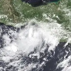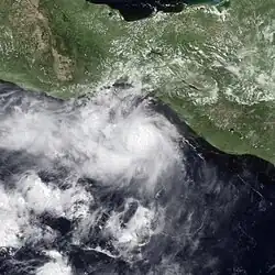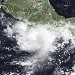 Late on June 16, deep convection organized in the Gulf of Tehuantepec into a tropical depression. Transcribing a small clockwise loop, the system moved west-northwest. Interaction with Mexico likely played a role in its weakening as water temperatures under the system were never below 82 °F (28 °C). The system dissipated about 90 mi (145 km) south of Puerto Ángel by the morning of June 19.[3]
