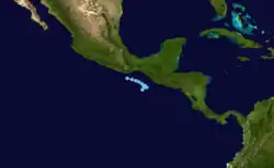This system originated as a low in the western Caribbean on the morning of May 27. The next day it moved southwest into Guatemala with significant thunderstorm activity, emerging into the Gulf of Tehuantepec around noon on May 29. By May 31, it was organized enough to be considered a tropical depression. Slowly weakening on June 1 as it remained quasi-stationary, the system dissipated in the Gulf of Tehuantepec on June 4.[3]