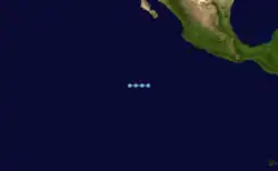 A tropical disturbance was spotted about 650 mi (1,045 km) southwest of Acapulco on July 12. By the evening of July 15, cyclonic turning was evident and the system was upgraded to a tropical depression. Moving unsteadily to the west-northwest, the system weakened, dissipating a few hundred miles west-northwest of where it had formed.[3]