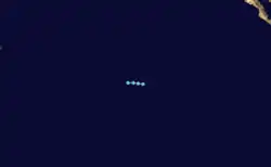 On June 15, this cyclone formed about 460 mi (740 km) southwest of Acapulco. Drifting west-northwest, it quickly strengthened into a tropical storm. Maximum sustained winds peaked near 50 mph (80 km/h) late on June 15. Turning south of due west, vertical wind shear weakened Bud, with the cyclone dissipating by the morning of June 17 about 23 miles (37 km) north-northwest of Clipperton Island.[3]