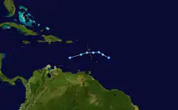 Tropical Depression Six formed on September 18 from a tropical wave.[8][21] The depression caused heavy rainfall in the Lesser Antilles,[21] before degenerating into an open tropical wave on September 20 near the Dominican Republic.[8][22]