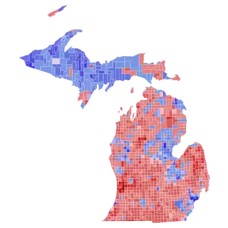 The 1984 United States Senate election in Michigan was held on November 6, 1984. Incumbent Democratic U.S. Senator Carl Levin won re-election to a second term, defeating Republican candidate and former astronaut Jack Lousma. Coinciding with Republican Ronald Reagan's landslide in Michigan and the rest of the country, this was the only Senate election of Levin's career in which his percentage of the vote and margin of victory decreased from the previous one.