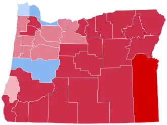 Oregon weighed in for this election as 3% more Democratic than the national average. As of the 2024 presidential election, it is the last time Oregon has voted for a Republican in a presidential election, and also the last time Lincoln County, Benton County and Hood River County have voted for a Republican presidential nominee. It also marks the last time any presidential candidate won Oregon while carrying the majority of its counties. Lane County among a handful of counties nationwide that flipped against Reagan after voting for him in 1980;[a].[2]