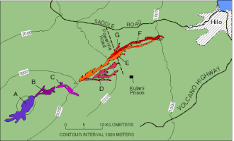 ![]() Map showing areas covered by ‘a‘ā lava flows during the 1984 eruption of Mauna Loa |