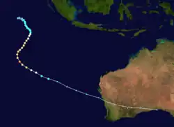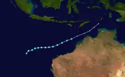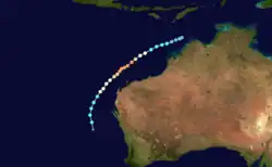 Tropical Cyclone Victor occurred from 2 March until 9 March 1986 and was the most severe cyclone of the Australian region for the season. It remained off the Western Australian coast for all its life. Its estimated lowest pressure was 930 hPa and highest gusts about 255 km/h.[1]