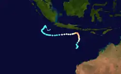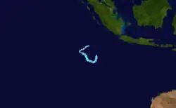 Tropical Cyclone Nicholas originated from a broad area of low pressure associated with a monsoonal trough south of Sumatra on November 25. It tracked south and gradually organized itself and became a tropical cyclone early on November 29. It then began to move east and passed through major shipping routes near Christmas Island, though none of the ships record any extensive winds from the nearby cyclone. Nicholas, while remaining a small system, continued to intensify and by December 3 reached a peak intensity as a category four cyclone with winds of 115 mph (185 km/h) 10-min sustained and a pressure of 945 hPa. Afterwards the cyclone turned almost directly south and gradually weakened. On December 7 the Nicholas's convection began to wane and the system had fully dissipated by that evening.[1]