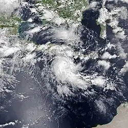 Peak intensity | 95 km/h (60 mph) (10-min); 984 hPa (mbar) |