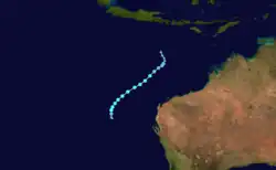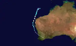 Tropical Cyclone Billy occurred from 4 May until 15 May 1986. It temporarily moved west into the Mauritius area of responsibility where it was renamed Lila but then moved back again. It crossed the Western Australian coast near Geraldton just after dissipating. Its estimated lowest pressure was 950 hPa.[1]This tropical cyclone is the only category 4 cyclone in the Australian Scale in the month of May.