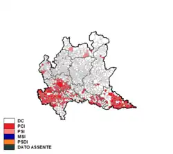 Province | DC | PCI | PSI | MSI | PRI | PSDI | Greens | PLI | DP | Total |