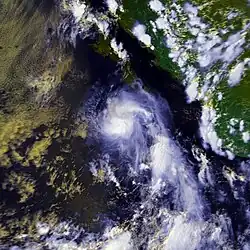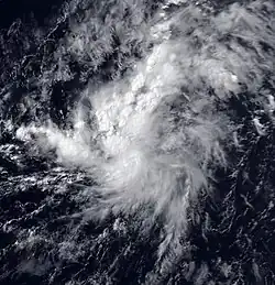 An area of disturbed weather developed a circulation on August 12 and was upgraded into Tropical Depression Twelve nearly 700 mi (1,100 km) south of the Baja California Peninsula. It drifted slowly to the northwest until it dissipated near 22 °N 110 °W on August 14. Peak maximum sustained winds were estimated at 35 mph (55 km/h).[2] Tropical Depression Seventeen formed on September 8, 30 km (20 mi) east of Socorro Island and dissipated on September 9 over cold water without becoming a tropical storm.[2]