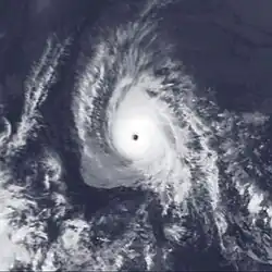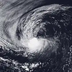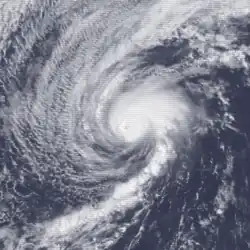 Activity in the Eastern Pacific Hurricane Center's (EPHC) area of responsibility was above average. There were 25 tropical depressions, one short of the record set in 1982, which had 26.[2] Only one system formed in the Central Pacific Hurricane Center's (CPHC) area of responsibility, and six others entered the CPHC area of responsibility from the EPHC area of responsibility.[3] In all, 17 systems formed, which is two storms above normal. In addition, 9 hurricanes were reported during the season, one more than average. An average number (3) of major hurricanes – Category 3 or higher on the Saffir-Simpson hurricane wind scale—was also reported.[4][5]