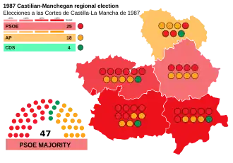 - ^ a b "Cortes of Castilla–La Mancha election results, 10 June 1987" (PDF). www.juntaelectoralcentral.es (in Spanish). Electoral Commission of Castilla–La Mancha. 30 June 1987. Retrieved 29 September 2017.