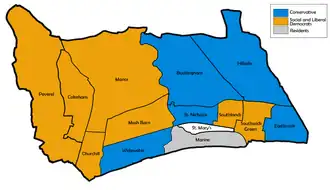 The election resulted in the new merger Social and Liberal Democrats retaining control of the council.[2][3]