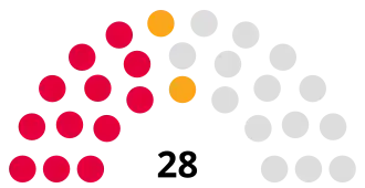 Party | Seats | Gains | Losses | Net gain/loss | Seats % | Votes % | Votes | +/− | |