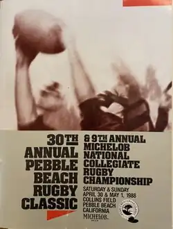 The 1988 National Collegiate Rugby Championship was the ninth edition of the official national championship for intercollegiate rugby. The tournament took place concurrently with the 30th Pebble Beach Rugby Classic on Collins Polo Field at Pebble Beach, California.[1] The Cal Bears won their seventh title with a victory over Dartmouth. Chris Tahta of Dartmouth was named best forward while Chris Williams of Cal was best back.