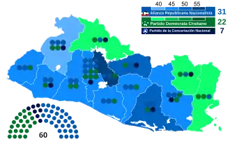 | Salvadoran Authentic Institutional Party | 19,609 | 2.11 | 0 | –1 |