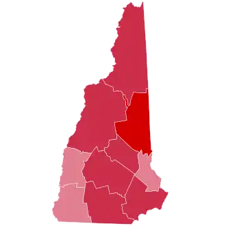 As of the 2024 presidential election, this is the last election in which a Republican has been able to win every county within the state as well as the last time the counties of Cheshire, Grafton, Merrimack and Strafford voted for a Republican presidential candidate.[2] This is also the last time that New Hampshire was won by double digits by either party, (although future Democratic candidates in both Bill Clinton, and later Barack Obama came incredibly close to doing so during their landslide victories in 1996, along with 2008).