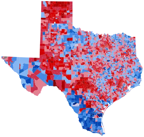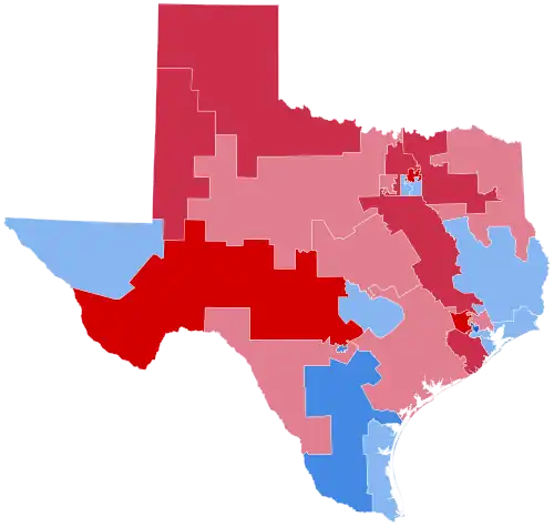 Texas voted for Bush by a solid 12.6% margin. Texas had been considered a competitive, albeit Republican-leaning, state in the run-up to the election.[2]